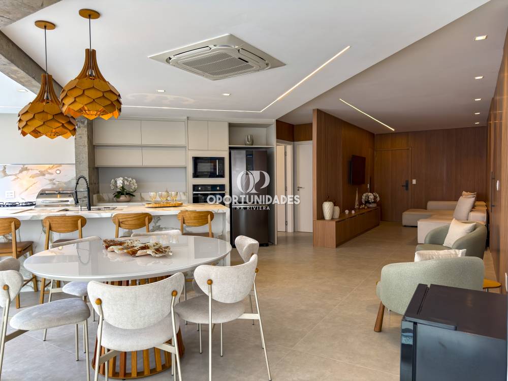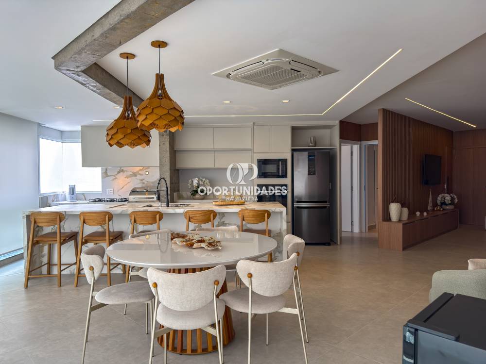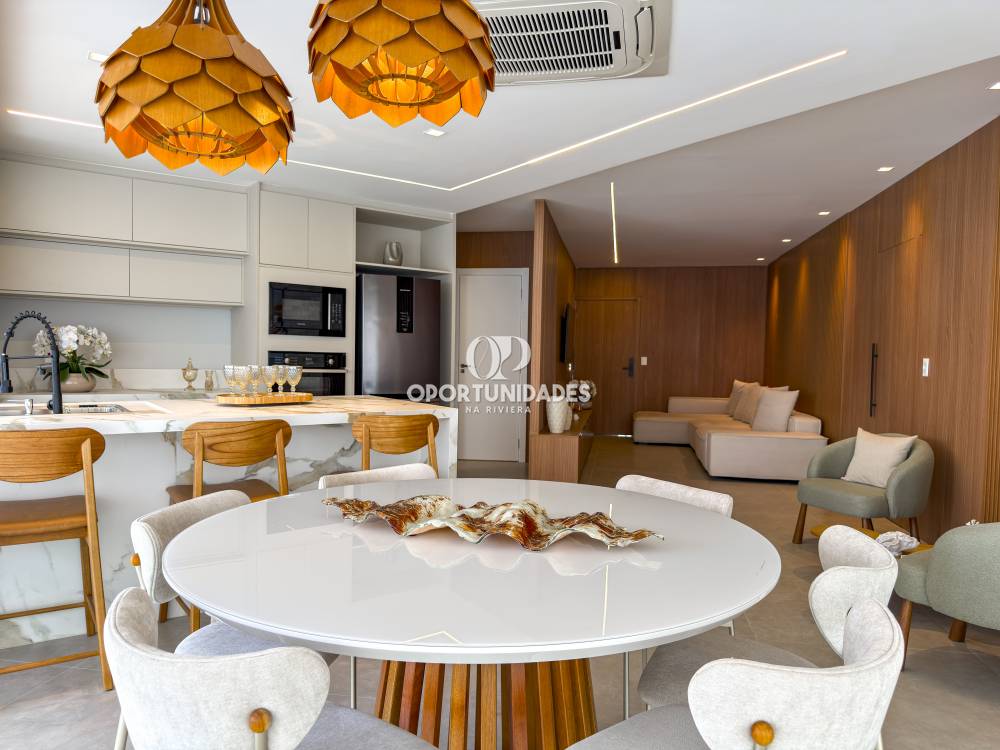 Excepcional apartamento de 153 m², situado no prestigiado Módulo 7, em Riviera de São Lourenço. Com 4 suítes espaçosas, este imóvel é ideal para famílias que valorizam conforto e privacidade. Além disso, o apartamento conta com 3 vagas de garagem, garantindo praticidade..O ambiente mobiliado combina modernidade e elegância, e a ampla sala de estar integrada à cozinha americana promete momentos inesquecíveis. A varanda gourmet é perfeita para receber amigos em uma deliciosa refeição.